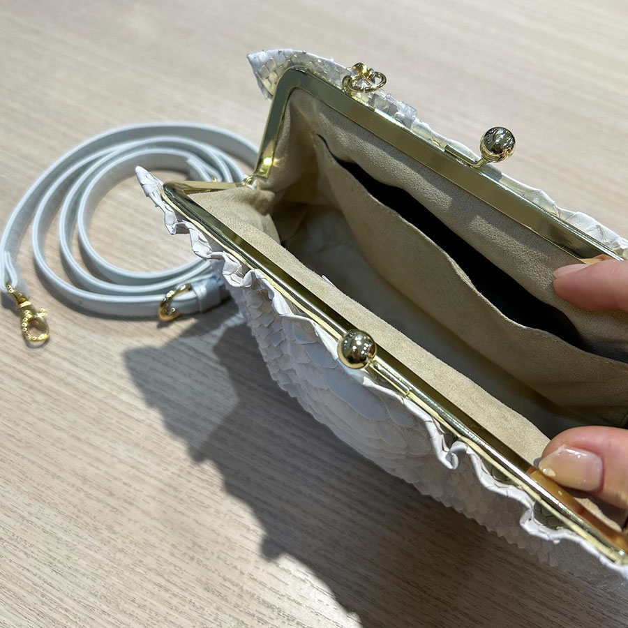 2026.01.8 【ABURAYAエルパ店】via doan-Bran Python ブランパイソン- Tweet Share +1 清楚で優しいホワイトカラーのパイソンに、ヘビ革本来の柄の濃淡をほのかに残した、フェミニンなシリーズです ショルダーとハンドバッグの2wayなので、雰囲気に合わせて使いやすさ🙆♀️ Tweet Share +1