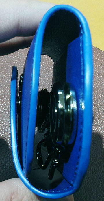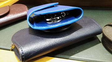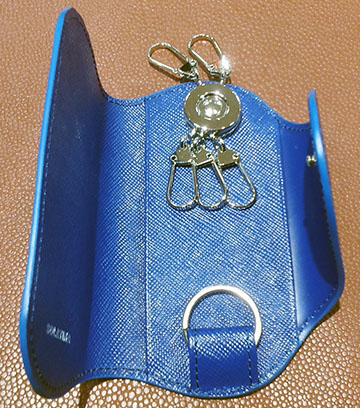 独特のインポートを連想させるフォルムは実に美しいです(*^^*) 幅をとったフォルムなので大きめのインテリジェンスキーも収まります(^^) しかもこの金具360℃回転するスイス製のriri社のものなんで高級感があり丈夫さは折り紙付き\(^o^)/