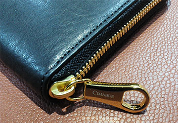 エクセラのゴールドジップはブライドルと同じものを使用(^^) レザーはお馴染み「栃木レザー」のシボありのレザーに何度となくオイルを塗り込み端正なフェイスに仕上がってます(ゝω∂)