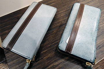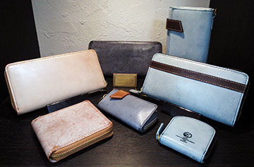 イタリアンレザーにオイルとロウを多量に塗り込み独特の表情を出しています(^-^) ロウの役割は女性の化粧品で例えるなら乳液になります(*^^*) レザー自体のオイル抜けを防ぎ長持ちさせる効果があるんですよ(ゝω・)