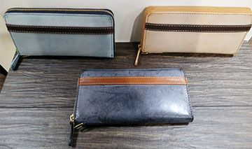 今年から導入したネイビー色は雑誌「モノマックス」でも絶賛されるほどオーラがあります(^∇^) 私も最近¥19000+税のジップ付長財布ネイビー色を購入しこんな感じに育ってきています\(^o^)/ まだまだですが(笑)