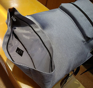 背中側のファスナー部分に15インチまでのPCを別部屋に収納することが可能ですよ(ゝω・)