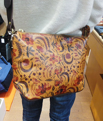 本日は新春っぽく華のあるバッグをご紹介します(^∇^) 昨年ブレイクした柄といえばこちらの「ボタニカル柄」でしょう☆彡 ネルドからこの柄をレザーにプリントした意欲作が再入荷しましたよ\(^o^)/ こちら「フラワーシリーズ」ショルダーバッグ¥23000+税です(^^)