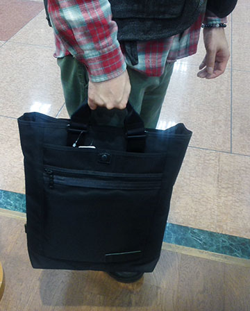 トートで使用する場合リュックはご覧のようにしまい込めますので商談先でもだらしなく見えません(^^)