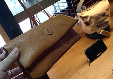 それでは、このブランドの本丸である大阪本店の雰囲気を今日はお伝えします(^∇^) 原宿の直営店と比べて落ち着いたシックな印象ですがレザーにリネンの商材を併せて奥行きを出したり、棚置きも間隔をしっかり持って一つ一つに目がいくようにとこだわった店づくりをされています(^ー^)