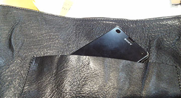 外側にスマホが入るスリットもあり内側には落としポケット2つの使用です(^∇^)