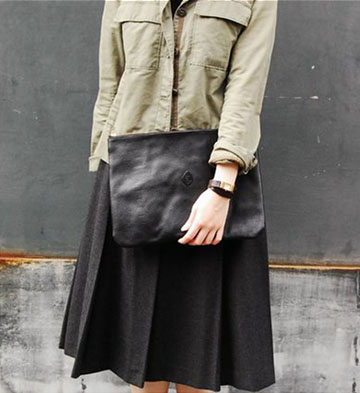かっちりしたレザーのものと比べて程よい抜け感があるのでカジュアルシーンのコーデでもあわせやすいです(^-^) 小脇に抱えても表情を残したまましっかり感が残るレザーは流石です!!