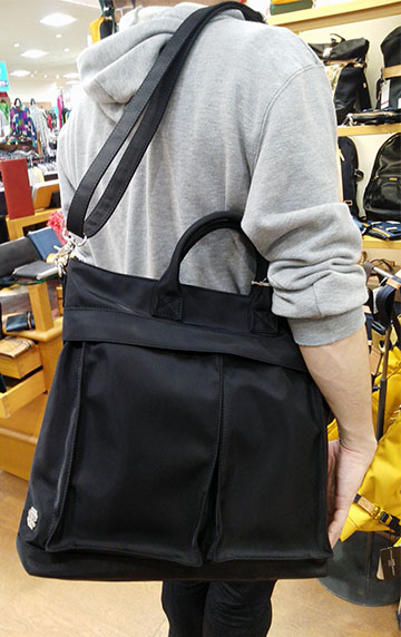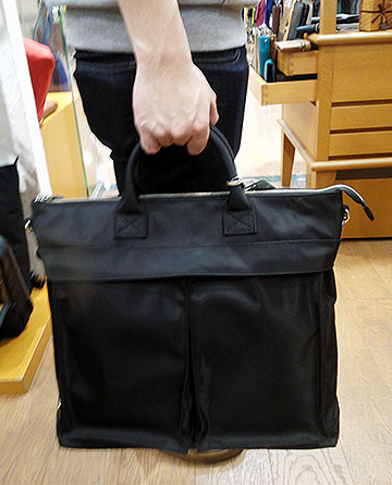 艶のあるナイロンに撥水加工をした素材を、潔いまでにシンプルに仕立てたバッグはノームコアなファッション傾向にも非常にマッチ☆彡 シルバーのブランドロゴもさりげなく高級感を高めています(^-^)