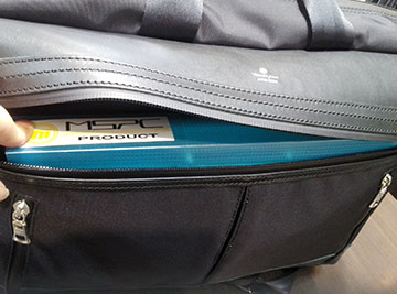 そして、この重厚なフェイスで重さ1100㌘という驚きの軽さ☆彡 前ポケットを流線型にしているのでキングファイル一冊が楽々収納可能(^∇^)