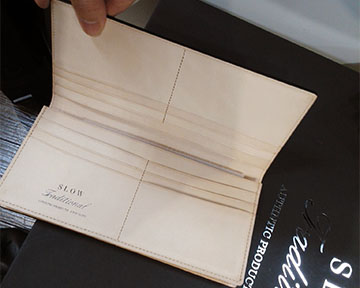 Blog SLOWトラディショナルな薄財布 SLOWの新機軸「SLOWトラディショナル」から財布も入荷していますよ~v(^o^) こちら「ブライドルシリーズ」純束入れ¥28000+税です(・∀・) ブログで度々紹介させていただいていますUKイメージのブライドル財布とは一線を画する薄づくりのトラッド感満載の雰囲気(^o^) チマブエグレースフルでお馴染みのトーマスウエア社のブライドルはロウの乗り方が抜群☆ この重厚なレザーを極限まで薄く仕立て、内装に姫路産のヌメ革で上品に仕上げています(^^) 小銭入れは敢えてつけず、思わずジャケットの内ポケットに忍ばせたくなるそんなお財布ですよ~☆彡 K’sborsa 2016.03.11 前の記事へ 次の記事へ