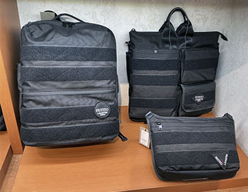 ヘルメットバッグ¥31,900税込、リュック¥38,500税込、スリムショルダーバッグ¥22,000税込
