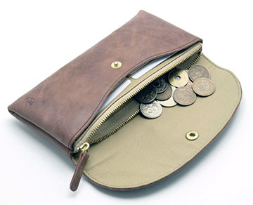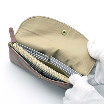 綺麗なくすみカラーで大人の革財布を演出します