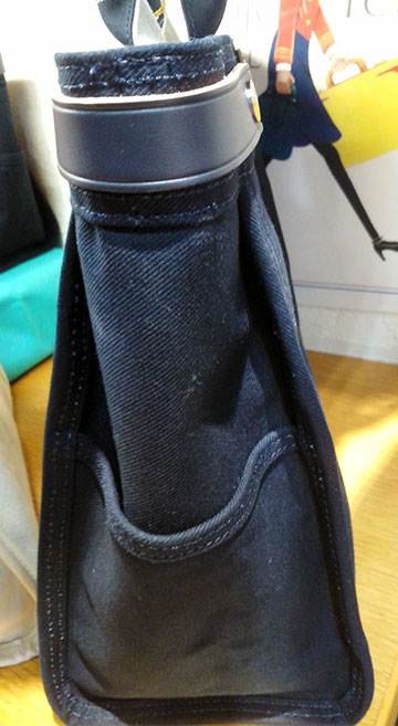 カジュアルな中に裏防水コットンでハリを出したバッグはかっちり感も合わせ持ちます(^^) 鞄の中が空でもしっかり自立するギミックはさすがです(^o^) 切りっぱなしのレザーを打ちっぱなしのリベットであしらったデザインも秀逸\(^o^)/