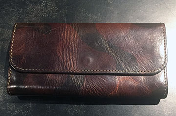圧倒的に他と違うのは牛のショルダー部分のみを使用した厚みと硬さのある迫力あるレザーであること☆彡 このブランド独自の特殊加工でカモフラプリントした後、染料で染め上げたレザーはまるで水彩画のようなワイルドながらエレガントな柄が生まれます(^o^)