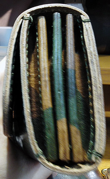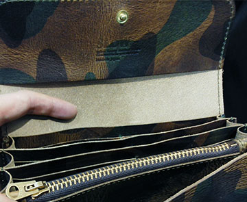 ¥29000+税の束入れは内装も抜かりなくカモフラレザーで切りっぱなし部分も迫力があり特別感タップリ\(^o^)/