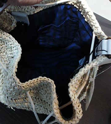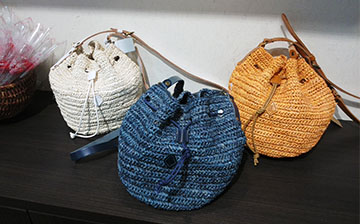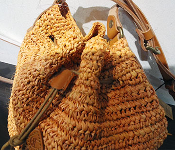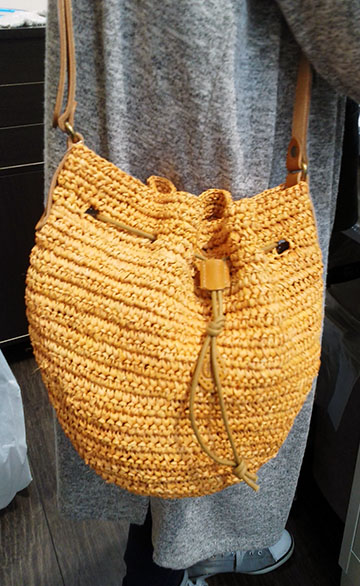 柔らかなラフィアを巾着型にしたこのバッグは、物を入れて口元を絞るとカゴ素材なのにご覧のような綺麗なドレープが生まれます(^o^)
