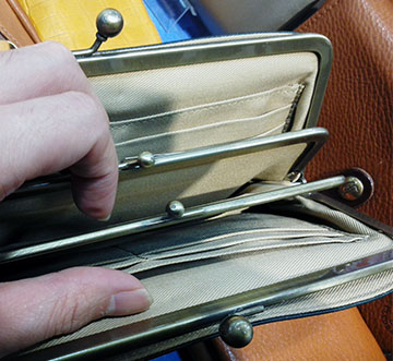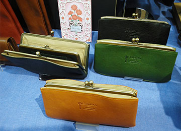 ガマ口を開けるとガマ口のコイン室がお目見えするのがこのお財布の一番のポイント(^^) ファスナーは一切なくガマ口の操作だけという他に類をみないデザインです(*^^*)