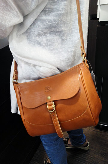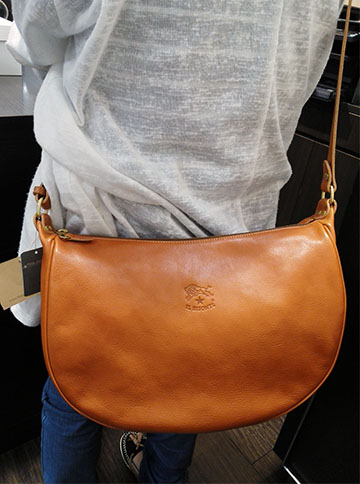 本日の新ブランド「イルビゾンテ」の紹介はサンタクローチェレザーのショルダーバッグ2つです\(^o^)/ まずはこちら¥46000+税の袋型ショルダーバッグです☆