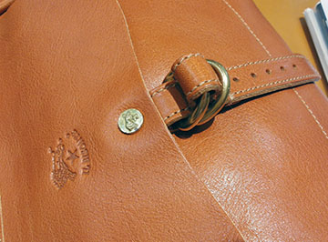 前ポケットの被せ部分の錠がギミックになっていてインポートの雰囲気を盛り上げます(^-^)