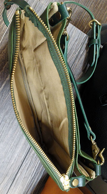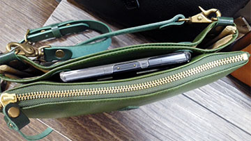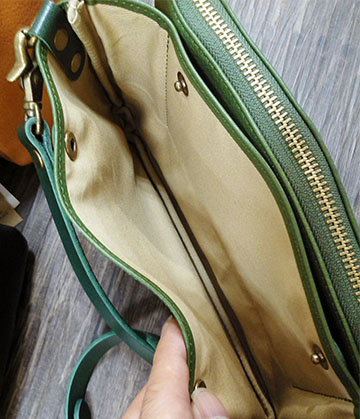 長財布がご覧のようにギリギリながらしっかり収まる絶妙のサイズ感です\(^o^)/ しかもファスナーポケットとダブルホックポケットの2室構造(*^o^*)