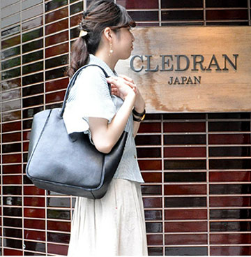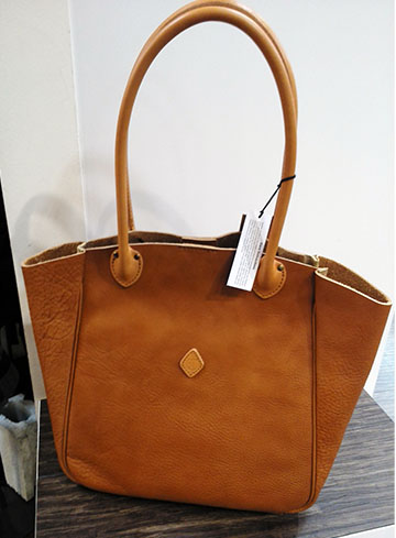 タテ型のスタイリッシュな形でありながら切りっぱなしのレザーで仕立てたトートバッグは非常に軽量!! 肩に収まるハンドルの長さもグッドです(^ー^)