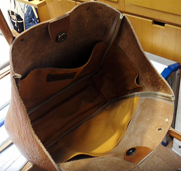 工夫底と浅い部分だけごらんのように裏地を貼っているので、内側の毛羽立ちを気にすることなく一枚レザーのクラフト感を味わえます(*’▽’*) 遠い秋の訪れを連想させるバッグです(^^) K’sborsa