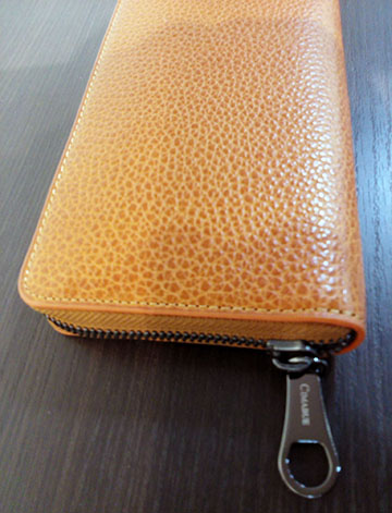 イタリアのコンチェリアオットチェント社のフルタンレザーで栃木レザーの代名詞SLOWも使用している革屋さんです☆彡 深いシュリンクの型押しを施すことで美しさ、エレガントさを強調しています(^∇^)