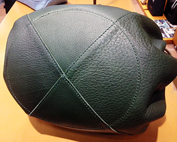 円形の底革には重さに耐えうるレザーで補強していますよ~v(^o^) カバンを置くとご覧のようにつぶれた形になり中身が容易に視認できます(*^o^*)
