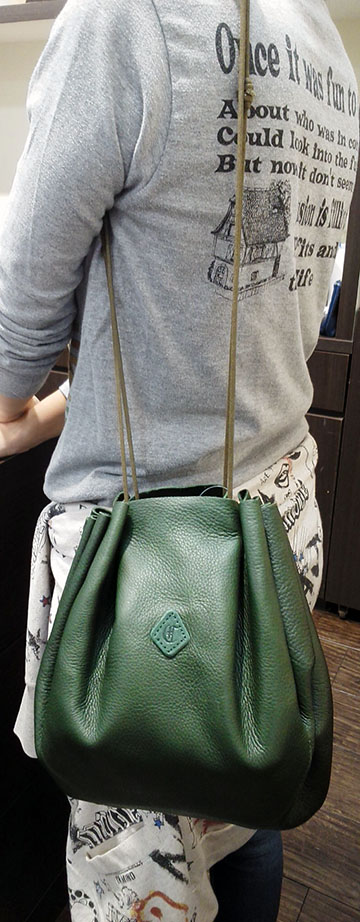 クレドランフェアでお渡ししているリーフレット内でも一際異才を放つレザー巾着バッグ「ペリオシリーズ」¥22000+税がとうとう入荷です(^^)