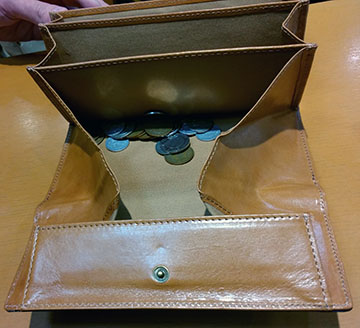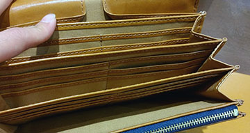 カードスリット18枚に3つの仕切りを装備したこのモデルはk’sborsaの財布の中でも一番の容量です(´V`)♪ 小銭部分もご覧のようにしっかり広く視認できる機能も大きな魅力です(^_^)