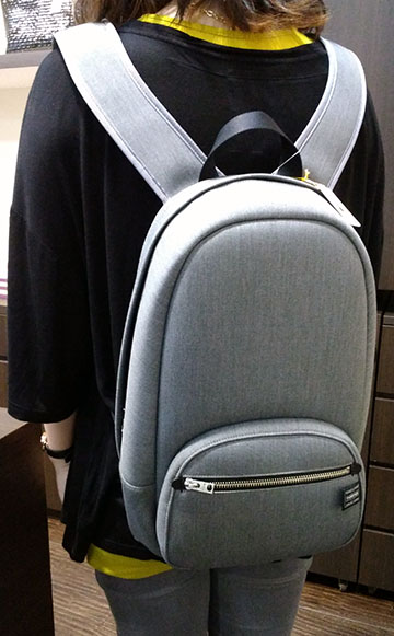 ポーターガールのリュック人気の理由は女性を意識したサイズどりが一番です☆ このリュックも縦長フォルムでハリ感がありながら横幅をスリムにしたフォルムなので大きく見せませんo(^o^)o