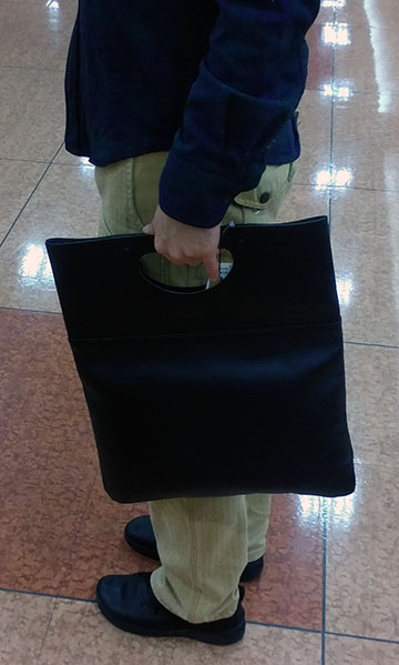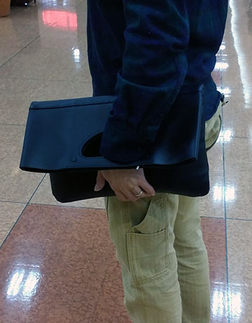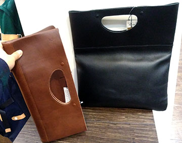 このクラッチシリーズのために開発されたレザーは傷に強く、シワになりにくい特徴のものヾ(^^ ) 抱えて持つ事を考えた絶妙な硬さも魅力ですo(^o^)o 荷物が多いときは伸ばしてハンドル持ちでA4収納のサイジングに(^_^)ノ
