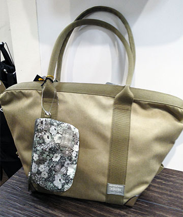 シンプルなチノクロスで織った上品なナイロンバッグにこのポーチを垂らすだけで一気に華やぎます(*^o^*) オススメは¥21000+税のトートバッグです(^ー^)