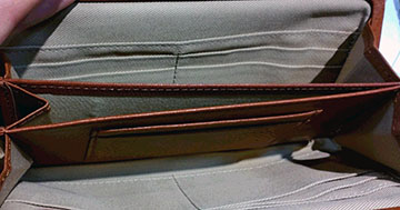 ガマ口ながらフレーム部分の金具に革巻きがされていてナチュラル感タップリ(^^*) 中を開くとファスナーもガマ口も何もありません((((;゜Д゜))))