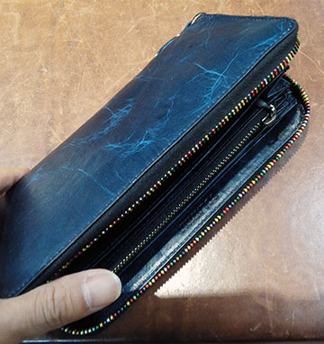 お財布の専門ブランドとしてK’sborsaに君臨する「ソラチナ」ですが、人気の火付け役となった人気シリーズ「焦がしホースシリーズ」に新色が登場です(^^) こちらのネイビー色です(ゝω∂)