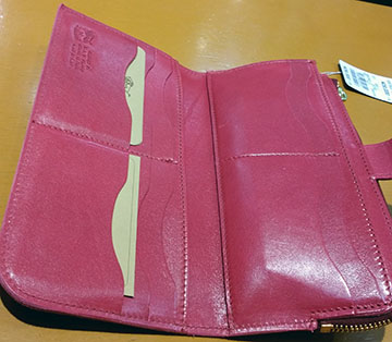 ボタンを開けずとも外側のL字のファスナーで小銭を広くスムーズに視認できますo(^o^)o