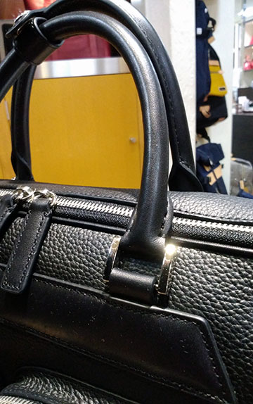 浅草にてファスナー部分の玉縁を造りあげ、ハンドルは日本の誇る鞄産地である豊岡の職人さんが手縫いしたこだわりもの(*^^)v