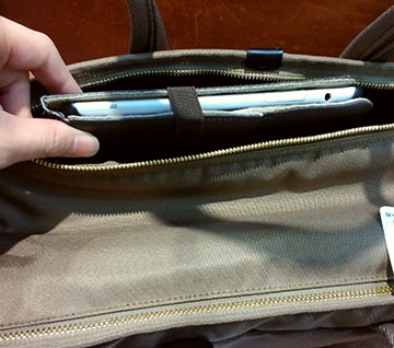 独立した起毛素材のPCルームにはクラッチバッグと同じ11インチまでのPC類を収納できます(o^^o)