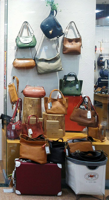 K’sborsaのウィンドウを飾る色とりどりのレディースレザーバッグは大好評(*^o^*)