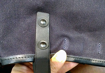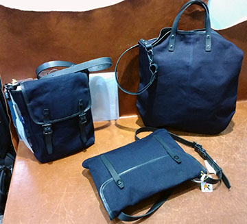 このバッグの生地は上品なサテン生地をキャントン社特有のタテ糸をタテ落ちを強調するロープ染色、ヨコ糸を深~い藍色を均一に染めるチーズ染色という技術で造りあげています\(^_^ )