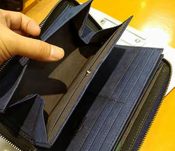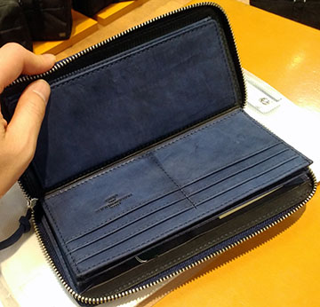 ジップ付き長財布¥16000+税はカードの視認性も良く小銭もボックス型で大きく見れます(^ー^) 内装にもヌバックを随所に使っていて高級感抜群ですね(*^ー゜)