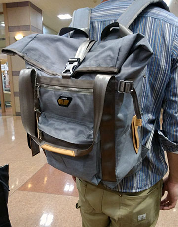 トートのハンドルは肩掛け可能に充分な長さ(^^*) 口元のロールアップがバッグをスッキリと見せます(^^) 無論サイドから中にアクセスしているファスナー完備ヾ(^^ )