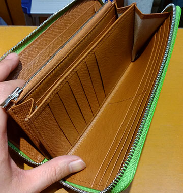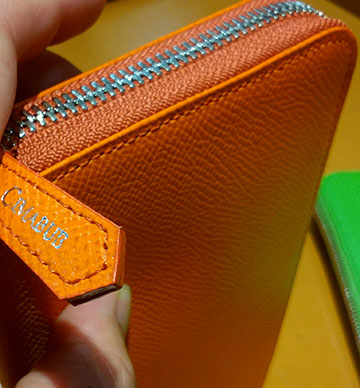 こちらのレザーはエルメスの革小物で良く使われるレザーです(o^^o) 通称エルメスレザーと呼ばれるこのレザーの最大の特徴はご覧の発色の良さ(´V`)♪