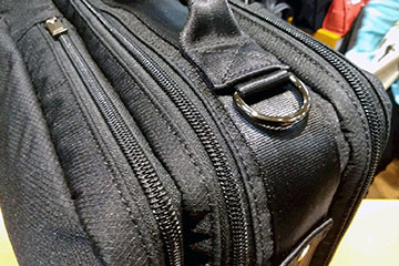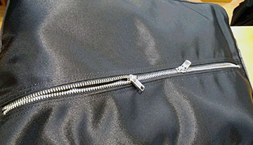 斜めに障子開きファスナーが走る前ポケットはデザインだけでなくリュックスタイルでの使い勝手をグッと向上させています(*^^)v
