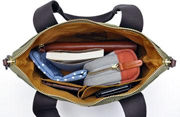 キュートに持って頂けるだけではなく、外に2箇所収納スペースがあり中身もサイズ感以上に収まるんです(^_^) 長財布と大きいポーチ、文庫本が余裕で入りますね(○´∀`○)