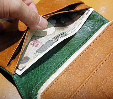 色デザインを含めこれだけ広く展開しているには訳があります(^∇^) 既存の長財布と比べるとコレだけコンパクト!! それでありながら1万円札がノンストレスで入る設計なんです(゜o゜;