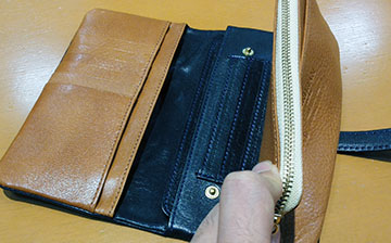 小銭入れ部分はホック4つで着脱可能な上ご覧のようにカードを入れるスペックも併設(゜o゜;(゜o゜; これにより、この小さなボディーでカード30枚はメタボ財布にならず飲み込めるのです\(^o^)/