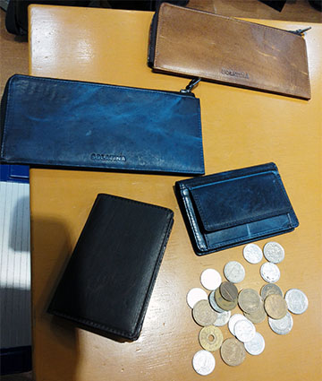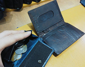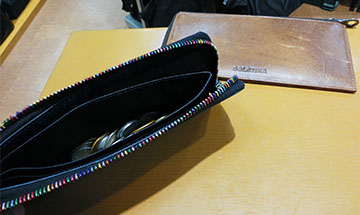 先日のブログで新色を紹介したお財布専門ブランド「ソラチナ」ですが「焦がし馬革シリーズ」の追加型が2型入荷してきましたので紹介したいと思います(^^) まずは¥13000+税のスマート長財布です☆ マチをなくしたフォルムはポケットに入れても全くかさばりません(^o^) 小銭は中心の袋状の部分に入れ、カードは15枚入るスペックなんですよ(ゝω∂)