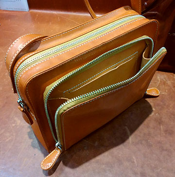 イタリア・トスカーナでタンニン鞣し染料染めされた独特のカラーエイジングにもご注目(^ー^) カバンの作り込みは水清らかな山梨「あけの工房」で一貫して丁寧に仕上げられます(^^)