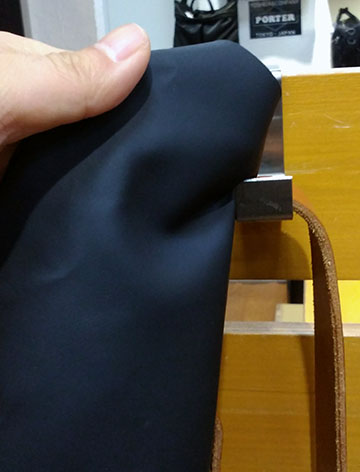 こちらの生地はドイツ製樹脂×イタリア製リリースペーパーの組み合わせの最新マテリアル(≧∇≦)b このように鋭い金具の角にこすりつけても全く無傷という画期的な驚き素材((((゜д゜;))))